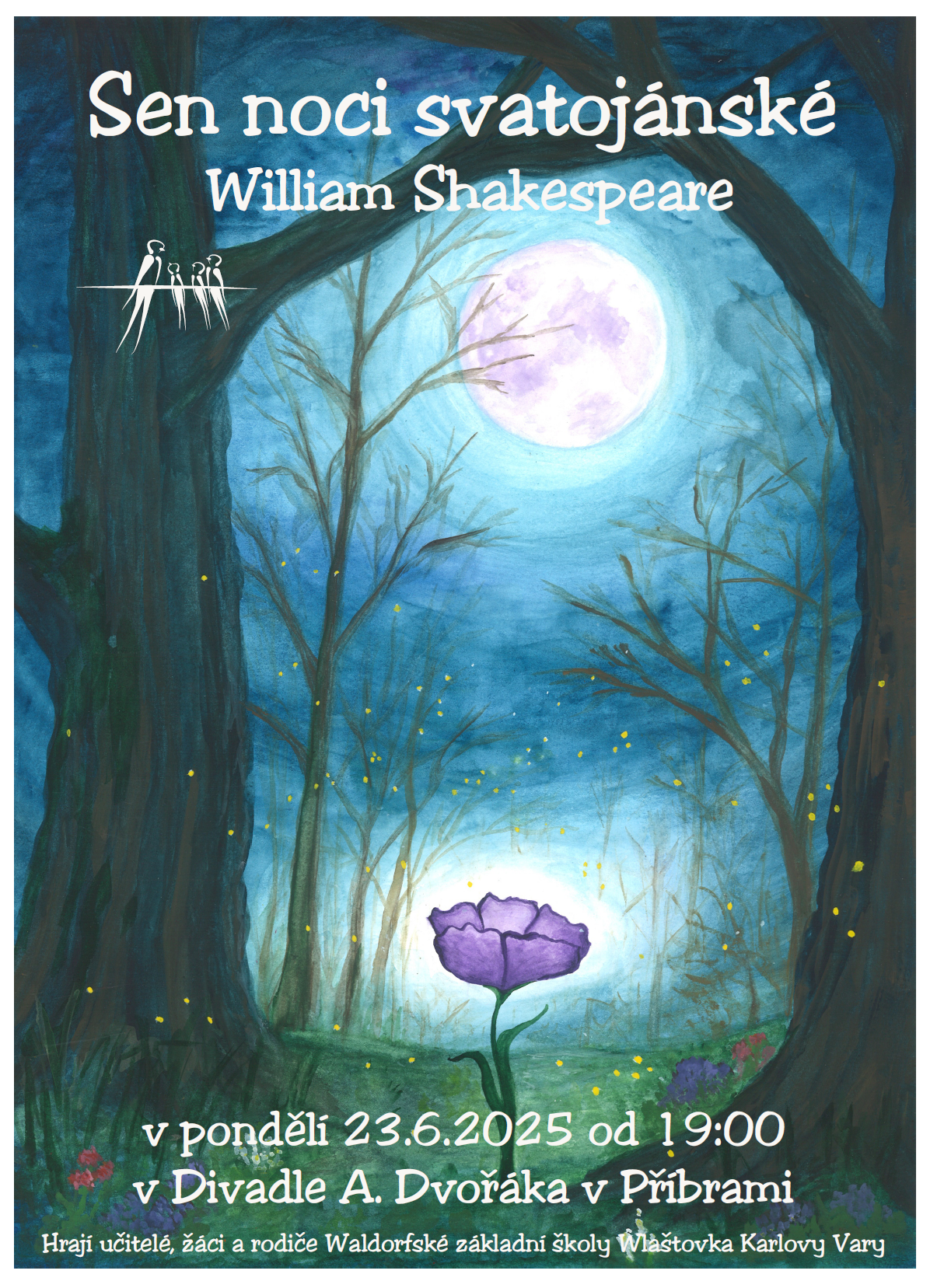 Naši třídenní divadelní pouť zakončíme 23. června v Příbrami, kde SEN NOCI SVATOJÁNSKÉ zahrajeme od 19 hodin v divadle A. Dvořáka.